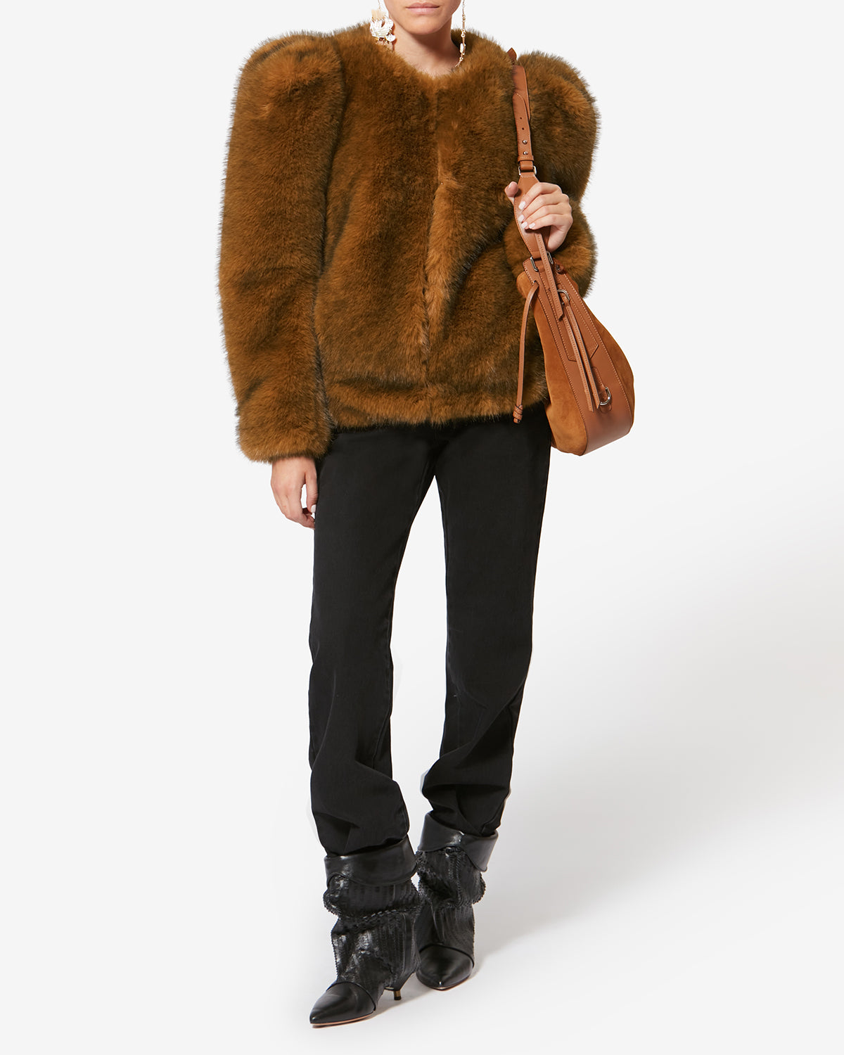Short faux fur coat with epaulets
