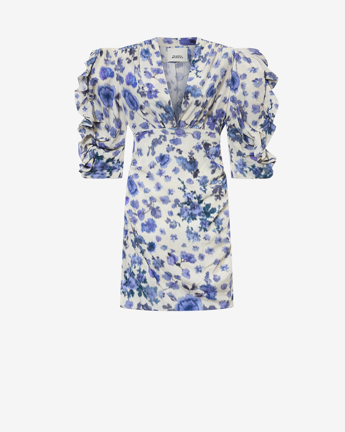 Short gathered stretch silk rose print dress